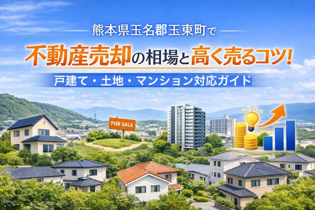 不動産売却とは、所有している土地や建物などの資産を第三者に譲渡し、現金化する手続きです。熊本県玉名郡玉東町では、住宅地や農地、一戸建て、分譲マンション、空き家、相続物件など多様な不動産が売却の対象となります。